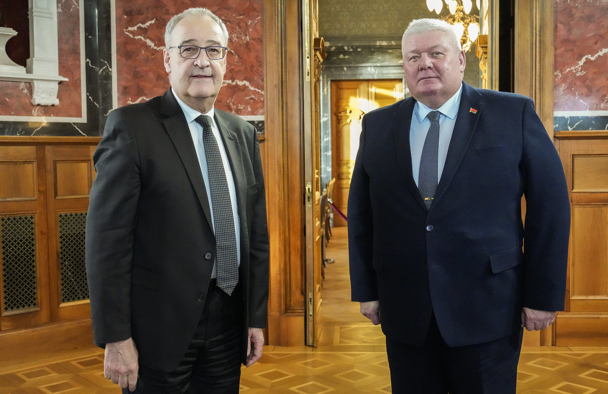23.01.2026 г.Чрезвычайный и Полномочный Посол Республики Беларусь в Швейцарии Александр Ганевич принял участие в традиционном новогоднем приеме для дипломатического корпуса от имени Федерального президента Швейцарии, главы Федерального департамента экономики, образования и научных исследований Ги Пармелена.